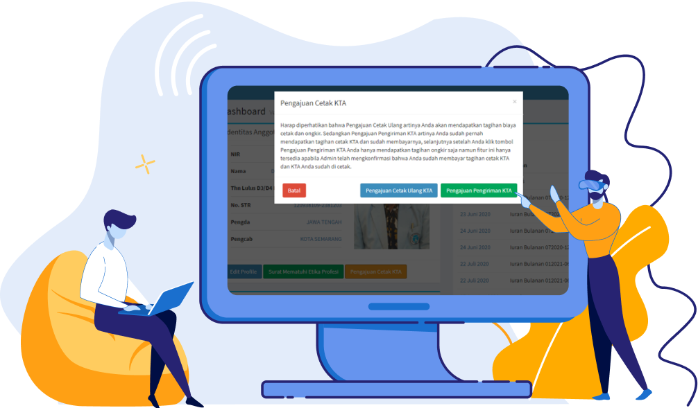 Harap di perhatikan bahwa Anda tidak bisa lanjut ke langkah selanjutnya apabila Admin belum mengkonfirmasi bahwa Anda sudah pernah membayar tagihan cetak KTA dan KTA Anda sudah di cetak. Anda bisa cek di http://ppniacehutarakab.org/kta-tercetak.
